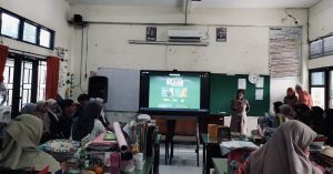 Menonton video tentang isu-isu terkini sesuai tema seperti phubbing dan diskusi reflektif bersama secara melingkar dengan bentuk kartu Reflektif Moji untuk menuju kegiatan inti nanti.
